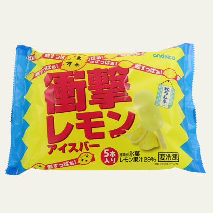 日本の暑い夏にはこれぐらいの衝撃がちょうどいい! レモン果汁を29%配合した暑さが吹き飛ぶようなすっぱさのアイスバー。 粒ラムネ入りで食感も楽しい、5本入りのマルチパックです。